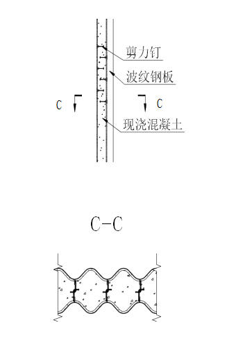 ③裝配式箱型鋼結構涵洞及通道結構中,內(nèi)部的豎墻是兩層豎直的波紋鋼板, 中間填充澆注了混凝土,波紋鋼板上設有鋼筋或剪力釘,此結構中,波紋鋼板既是中間混凝土的澆注模板,又是結構體本身,并與混凝土結構形成了鋼與混凝土組合式結構,力學性能呈倍數(shù)增加,可使該處波紋鋼板的厚度減少一半左右。所以,內(nèi)部豎墻應用了鋼與混凝土組合結構原理,是裝配式箱型鋼結構涵洞及通道造價節(jié)省的第三個因素。