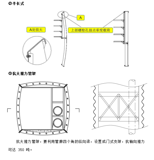 l 管架的著力點(diǎn)不設(shè)在管壁上,避免了鋼波紋板所不允許的點(diǎn)受力,同時管架可以承受重載;