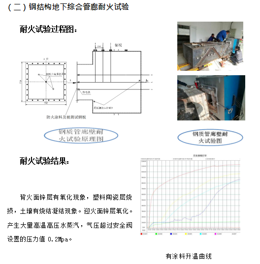④更為重要的是,耐火涂料只能阻止火災(zāi)時鋼結(jié)構(gòu)的溫度不高于 550℃,但對于鋼結(jié)構(gòu)地下管廊來說情況特殊,在火災(zāi)發(fā)生半小時左右,耐火涂料覆蓋的鋼結(jié)構(gòu)體溫度就超過 150℃,廊體外部土壤中的水份形成高溫高壓蒸汽,其產(chǎn)生的次生災(zāi)害有可能嚴(yán)重于火災(zāi)本身。