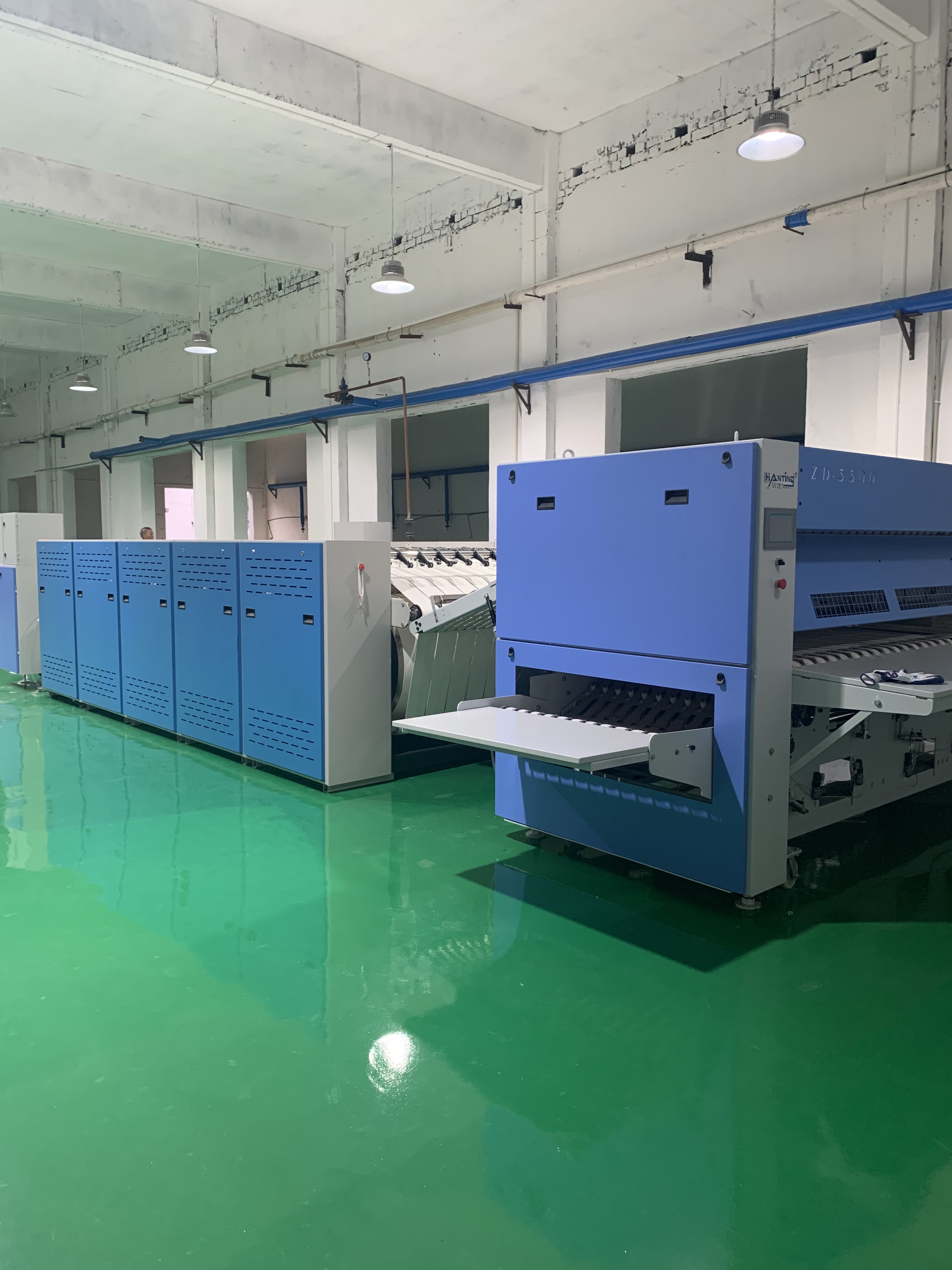 熨燙速度可根據織物厚度與蒸汽供應狀態任意調節(無極調速),有單個、兩個或三個滾筒機型,雙滾筒個三滾筒熨平機可實現高速熨平。
